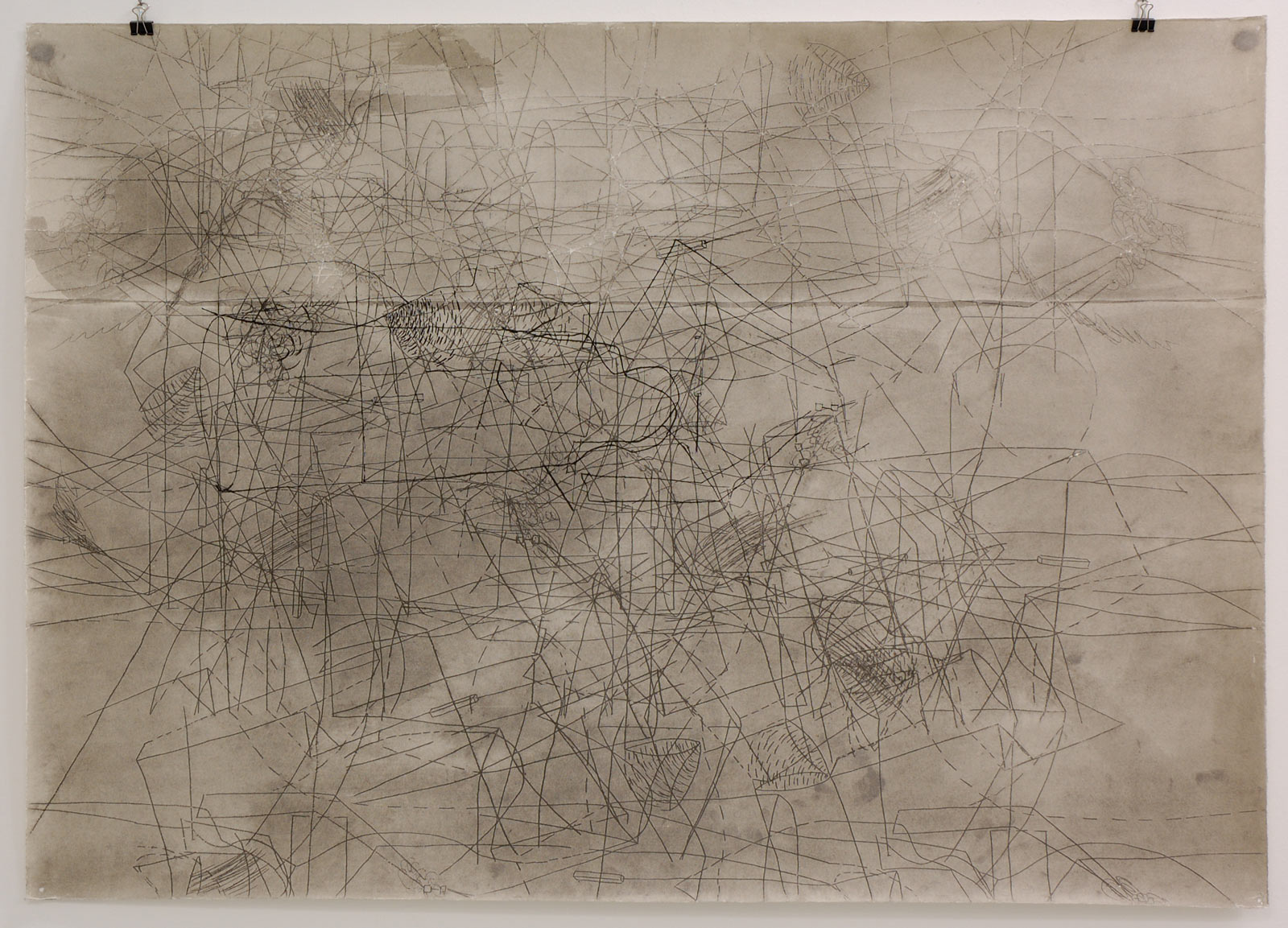 needle scratch, pencil, ink, paper, 76x108 cm