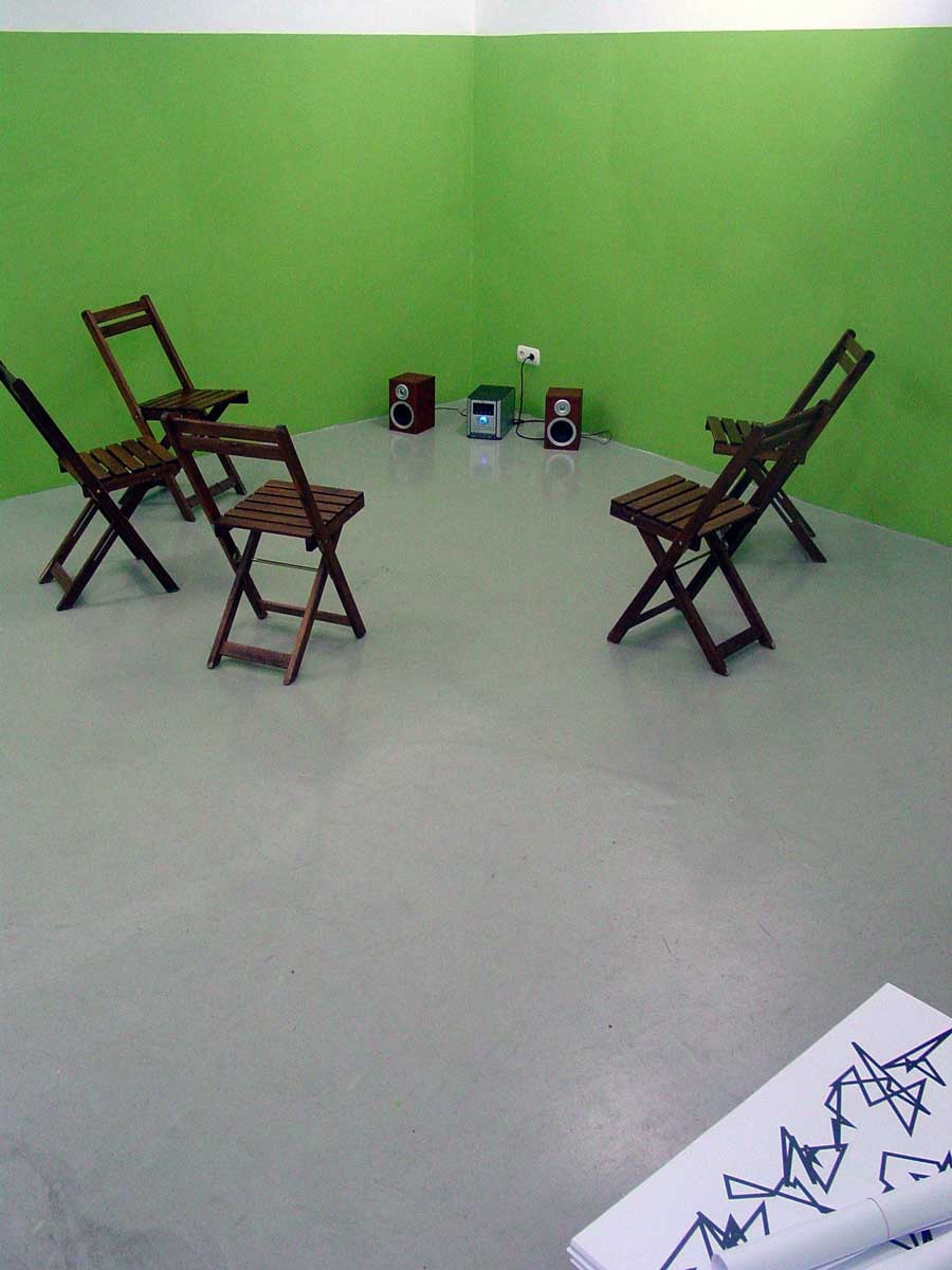 Installation view with works of VASIL ARTAMONOV and ALEXEY KLYUYKOV, Kisterem, 2008