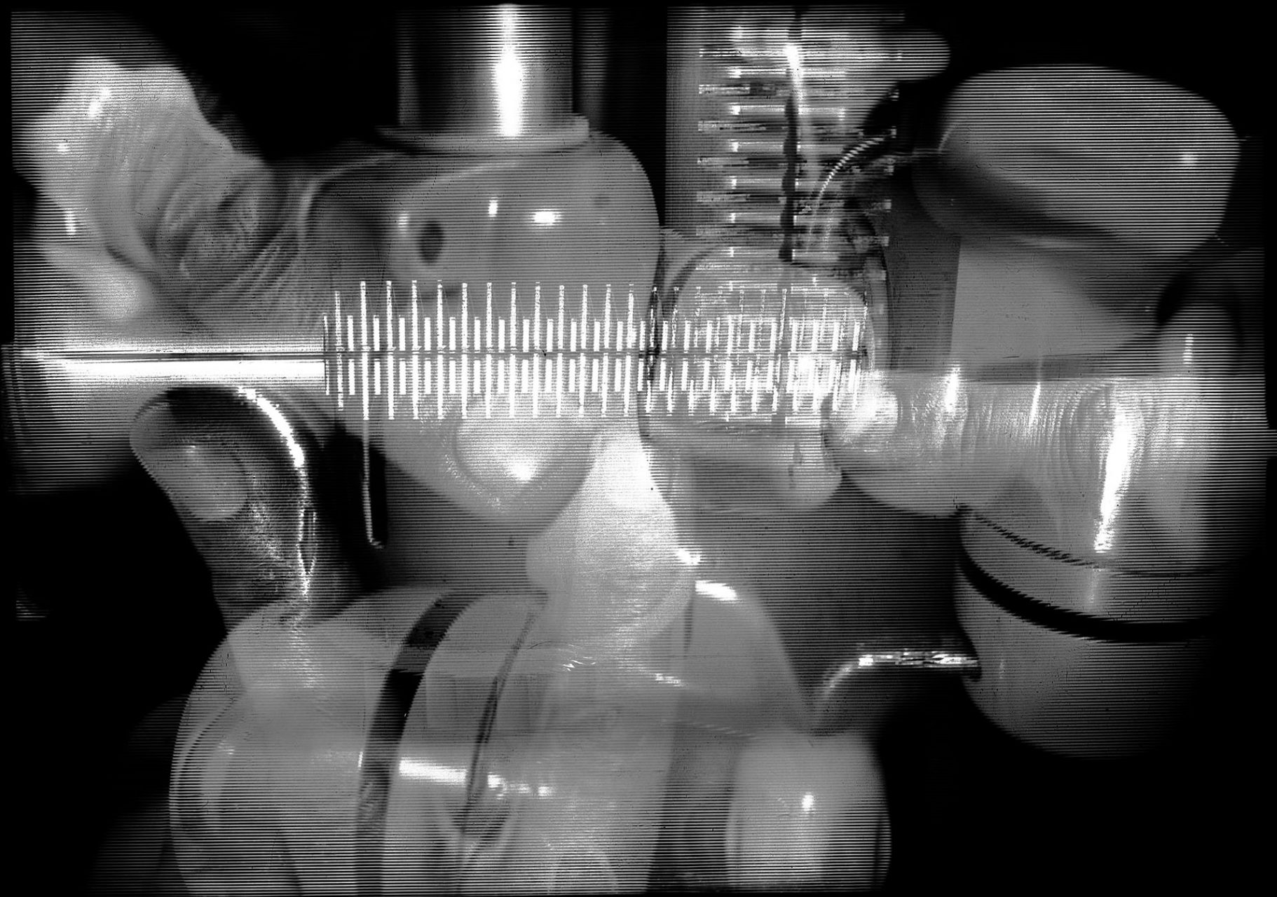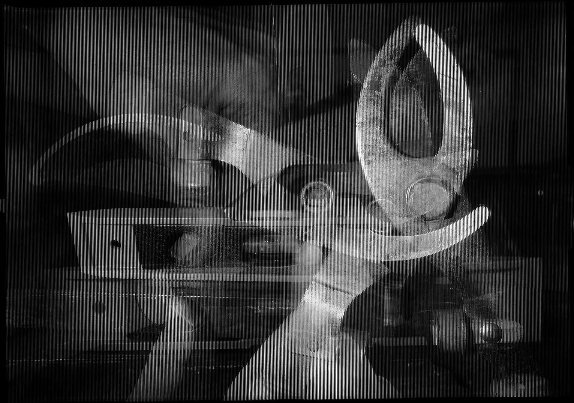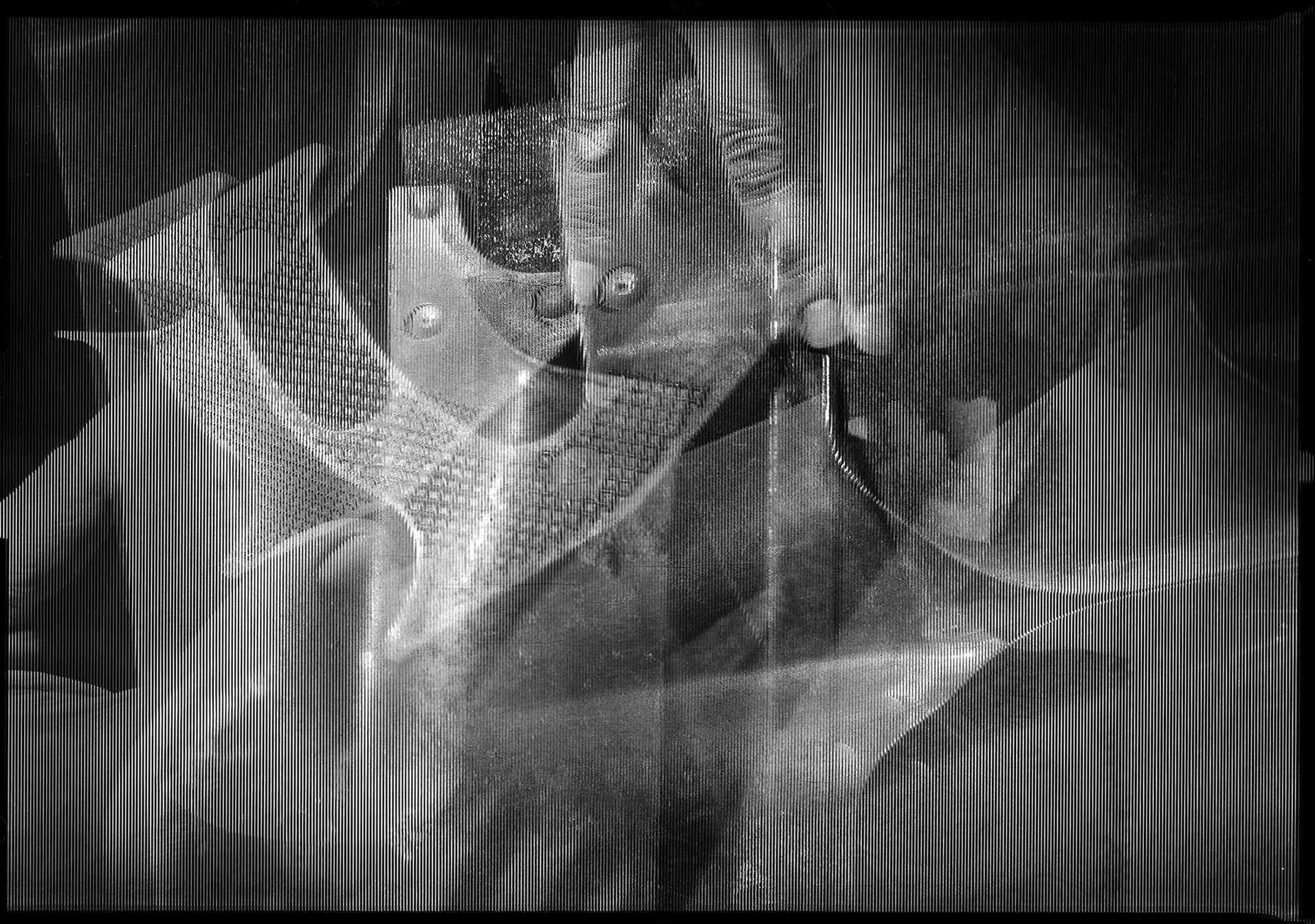A tekintetet megragadja a csillámló fény, amely Szegedy-Maszák Zoltán lentikuláris fényképein a látogató mozgását követve hullámzik. Aki közelebb lép a két sorban elhelyezett, képeslapnál alig nagyobb, fekete-fehér képekhez, annak első ránézésre bizonyára a gyermekkorból ismerős ‘kacsintó pénztárcák’ és az olyan szóróajándék-kártyák ugranak be, amelyek ide-oda mozgatva más-más képet mutatnak. Ám a felszíni hasonlóságon túl jóval érdekesebbek a különbségek. Míg az említett műanyaglemezek mindössze két képpel operálnak, Szegedy-Maszák a lentikuláris eljárás új fajtáját fedezte fel, melynek révén akárhány kép belesűríthető egyetlen negatívba, a mennyiségnek csupán a percepciós korlátok szabnak határt. Megdöbbentő az egymásra fényképezett tárgyak – kerti eszközök és a művész kezének részletgazdagsága, valamint az a furcsaság, hogy egyszerre láthatóak: inkább párhuzamosan vannak jelen ahelyett, hogy kioltanák, vagy rétegeik eltakarnák egymást. Megfelelő közelségből nézve, amikor a retinákra két különböző kép vetül, létrejön a sztereopszis: a néző háromdimenzionális képet érzékel.