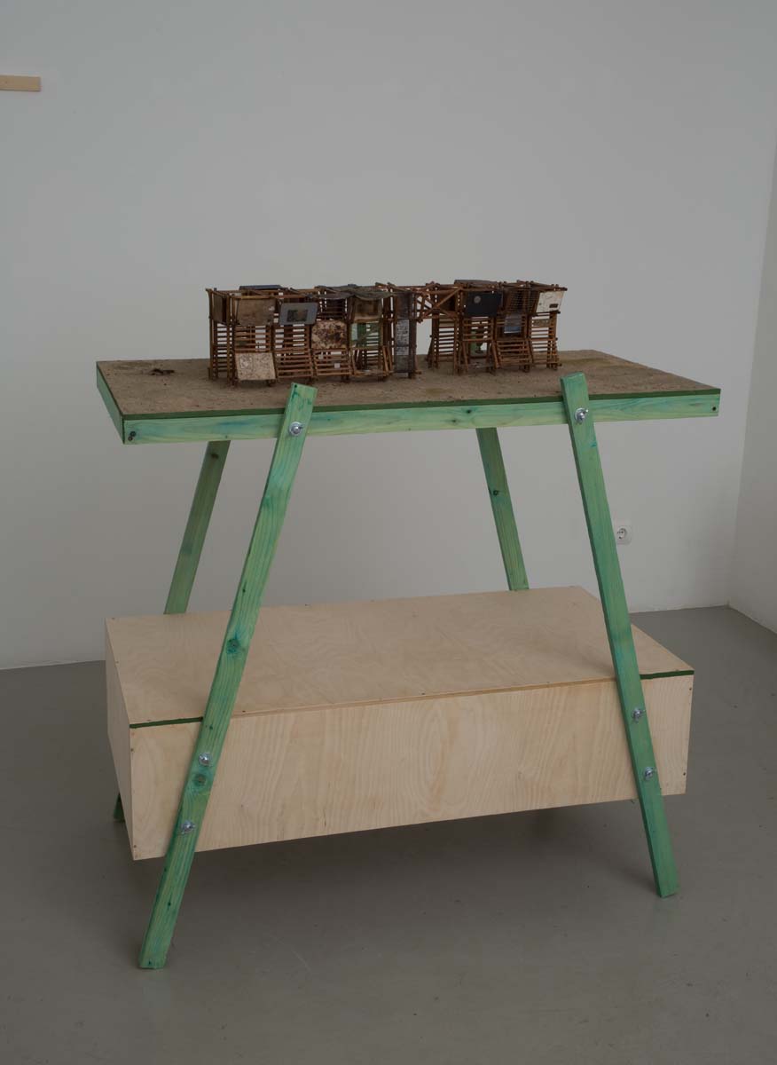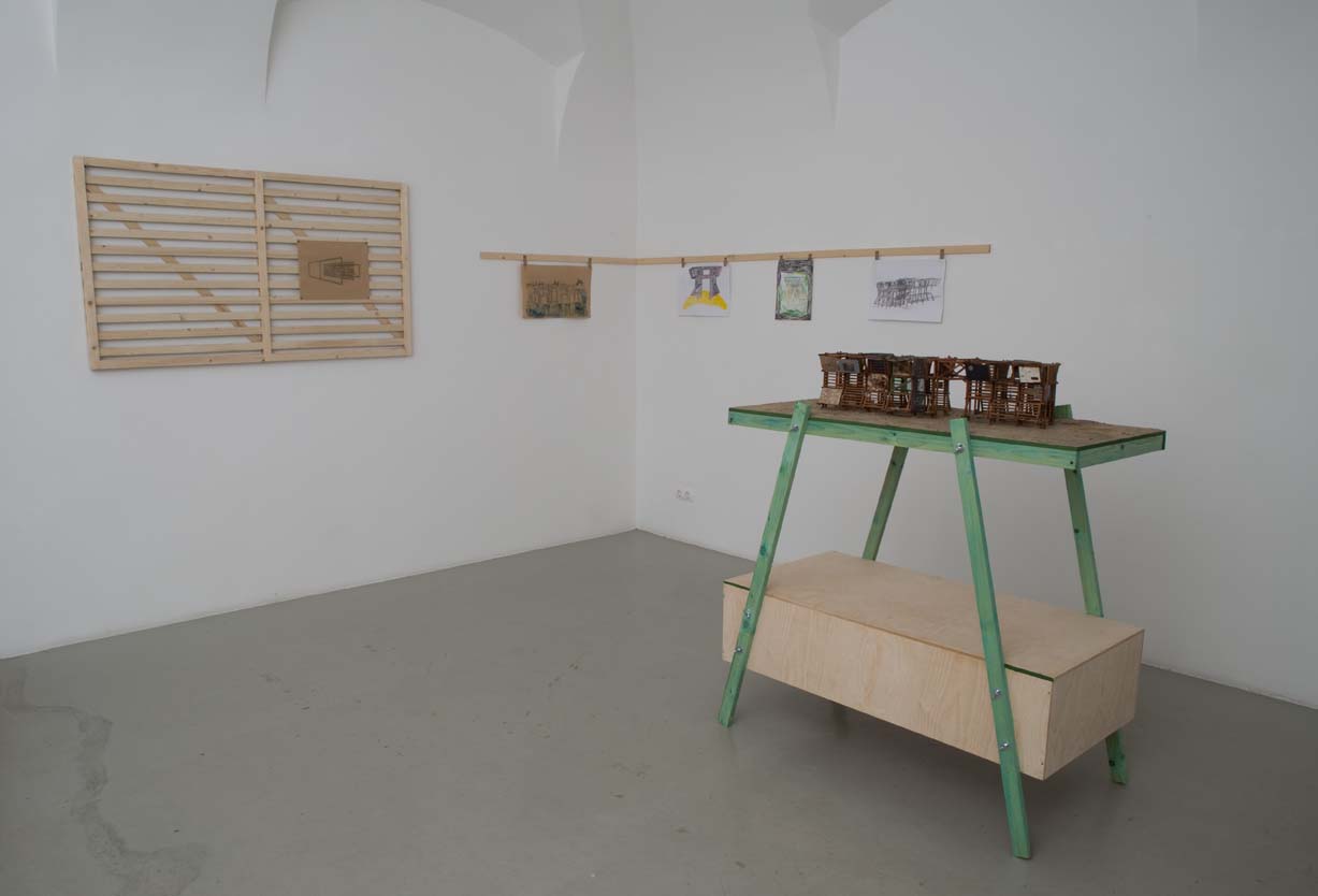 After the Biennale of Sydney, Tamás Kaszás’ newest works are on display in Kisterem. The exhibition opening is the preview of Tamás Kaszás’ Visual Aid catalogue as well. The volume that was published by Kisterem in 2013 was deliberatly not made to be an exhibition catalogue, but rather a publication that leads through his artistic practice, summing thematic work groups striking from time to time in different constellations. In other words, deranging the regular order, Kaszás assigns an exhibition to the previously published volume. During the exhibition, the large-scale visual aid installations that are reproduced on the brochure pages come to life in the gallery space like diorama models. Kaszás’ visual aid’s art historical antecedents assets up to the 1920s.