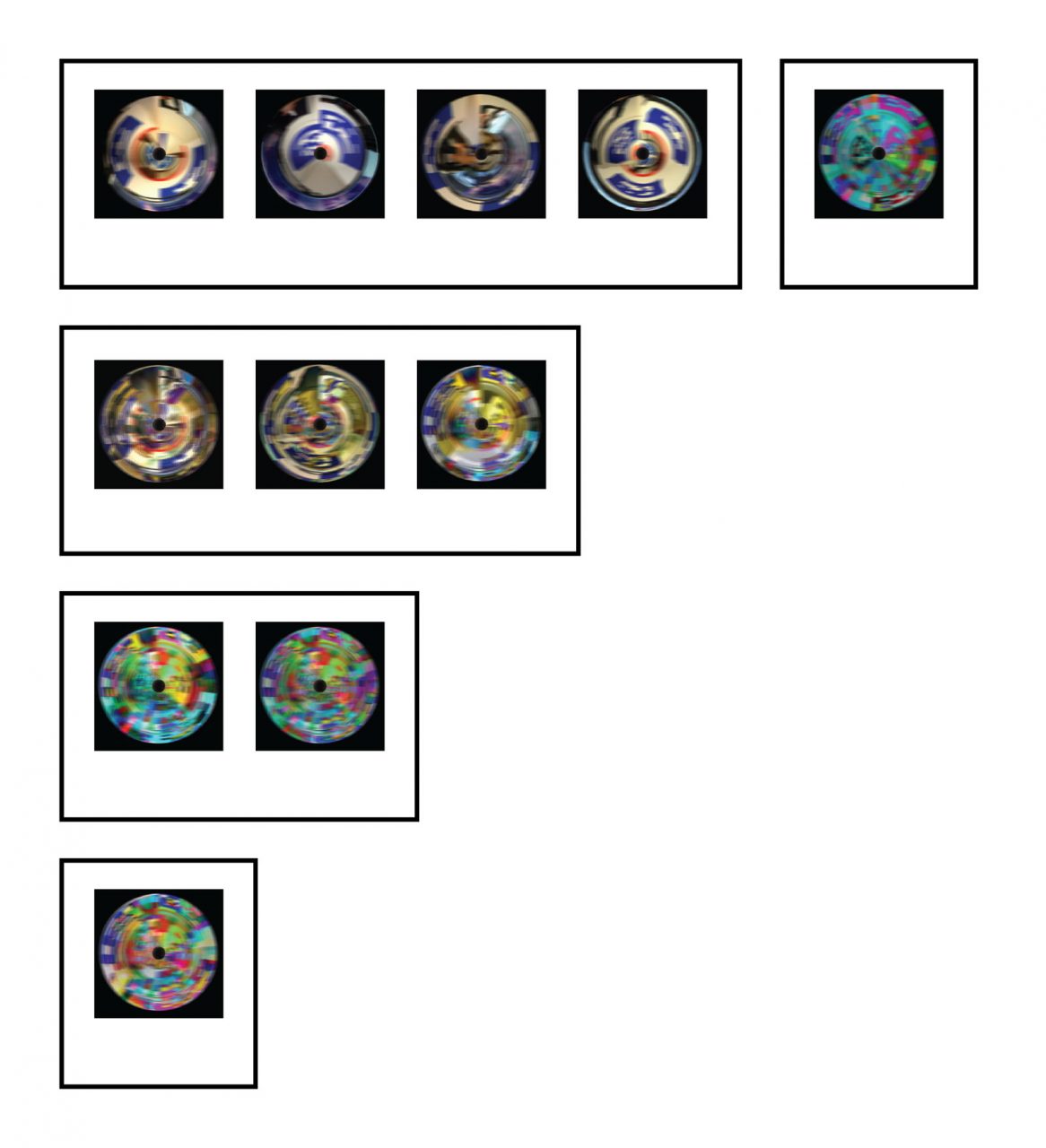 Three digital photographs as pure data sources are used to generate all the pictures of the series. The photos act as mapped surfaces on overlapping three dimensional objects (practically cones), and – similarly to the modification-layers of image-manipulating softwares – affect each other based on simple mathematical equatations.