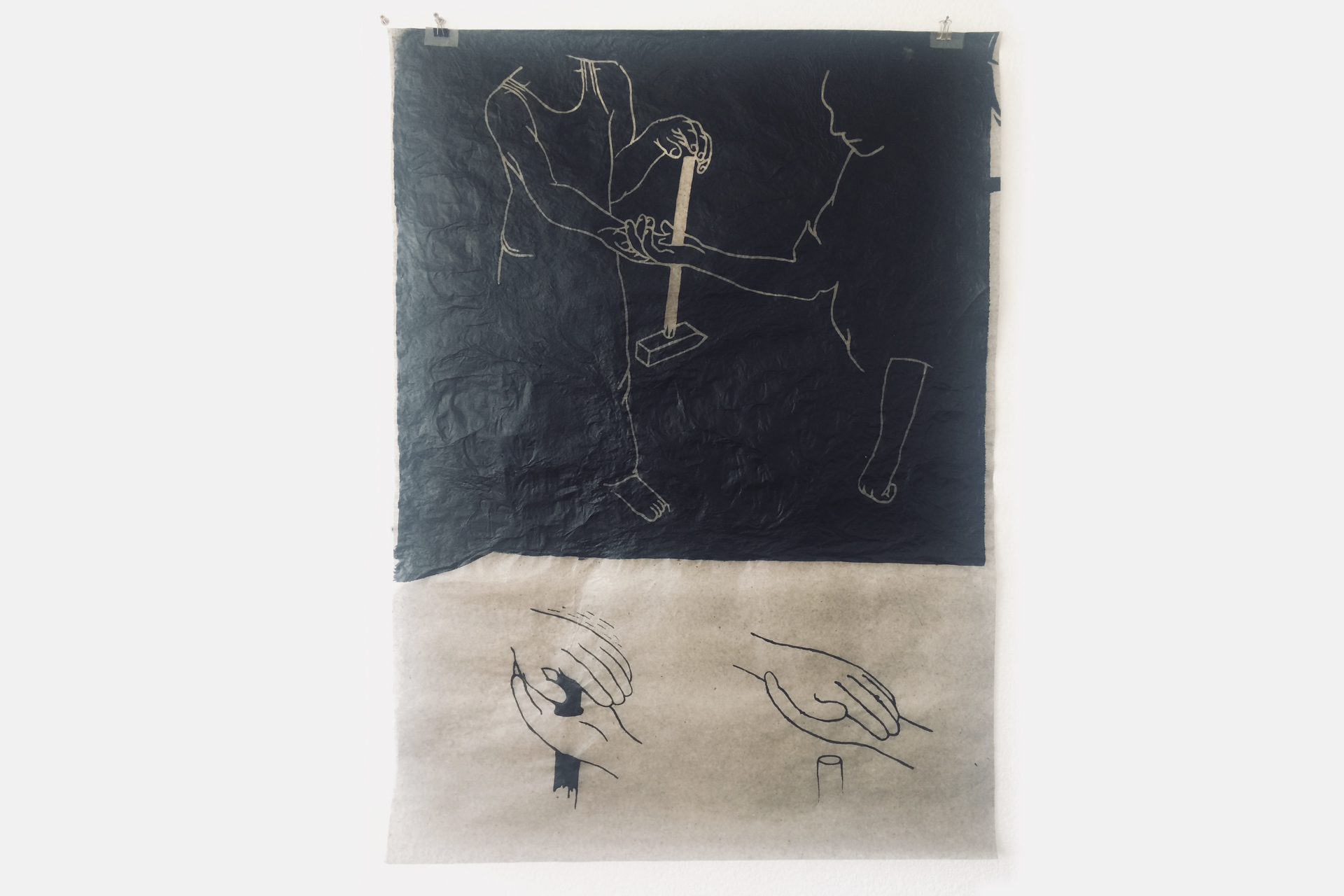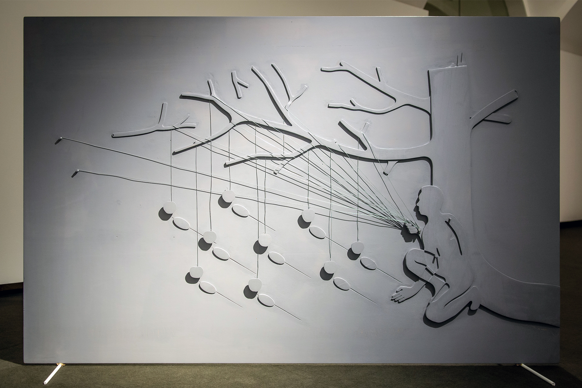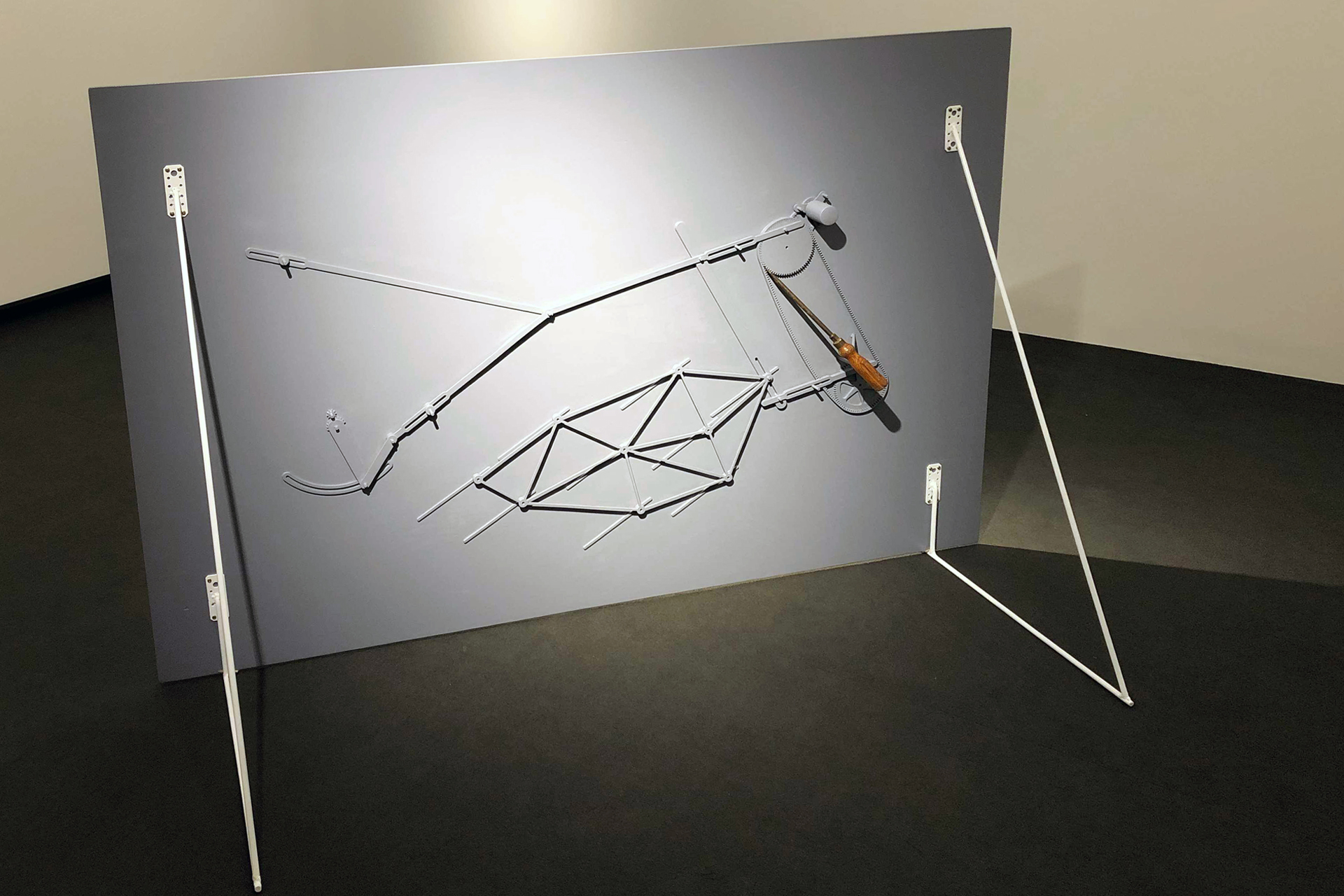 double sided beech relief, enamel, screwdriver, wire, 120 x 180 cm