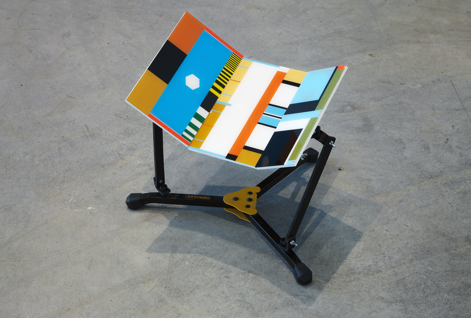 acrylic, plywood, loudspeaker, sound system, metal stand, 68x90x130 cm