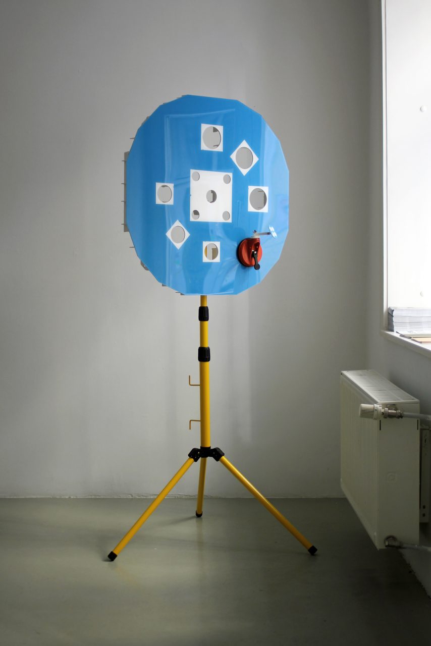 acrylic on plexi, plastic, metal stand, 80x80x180cm