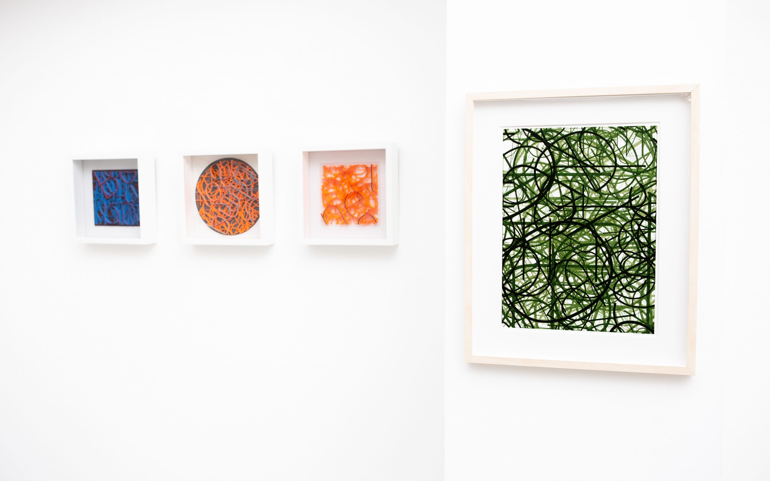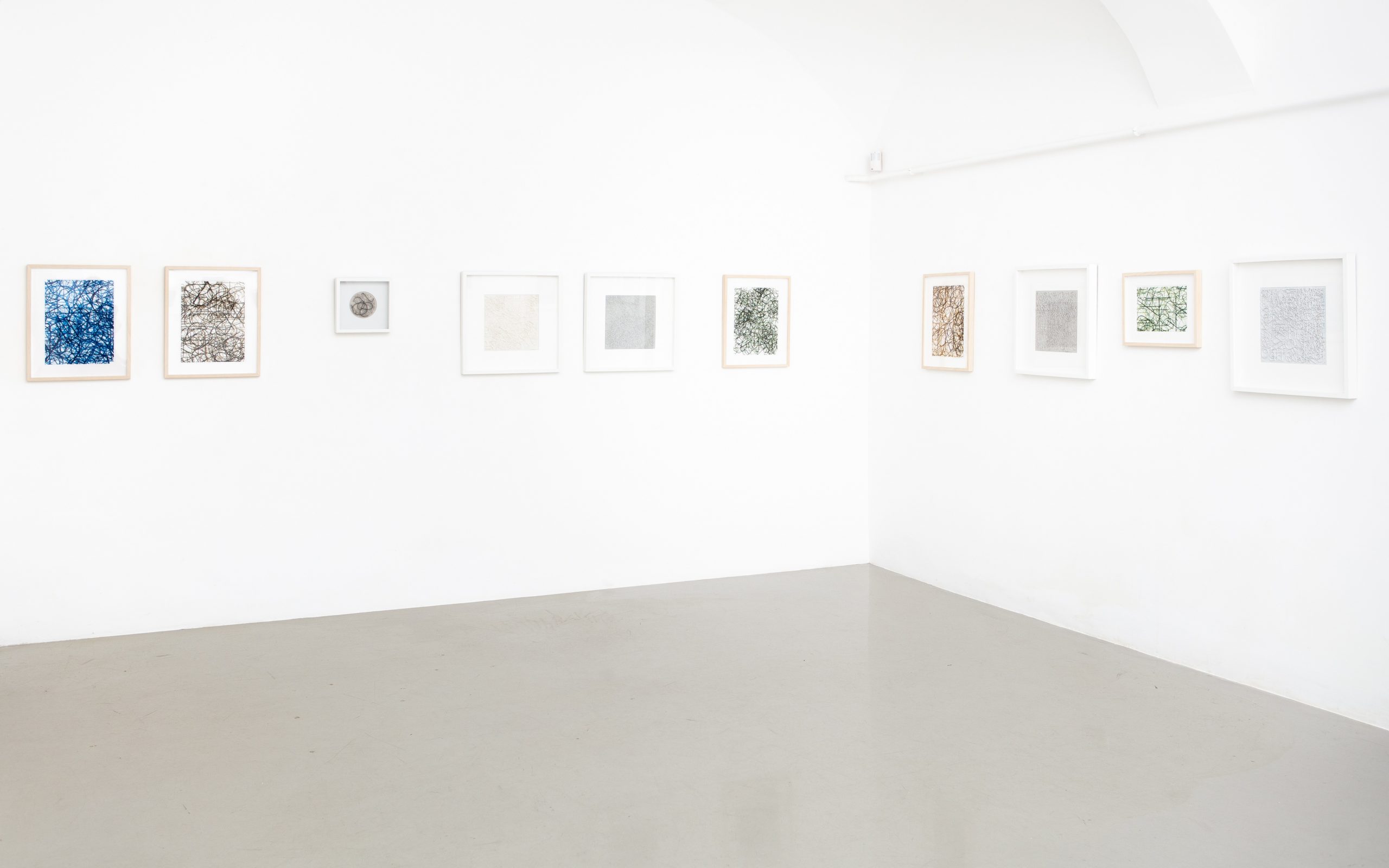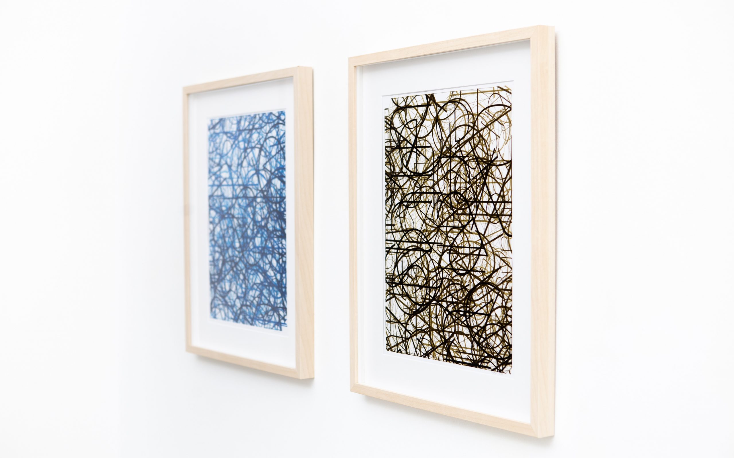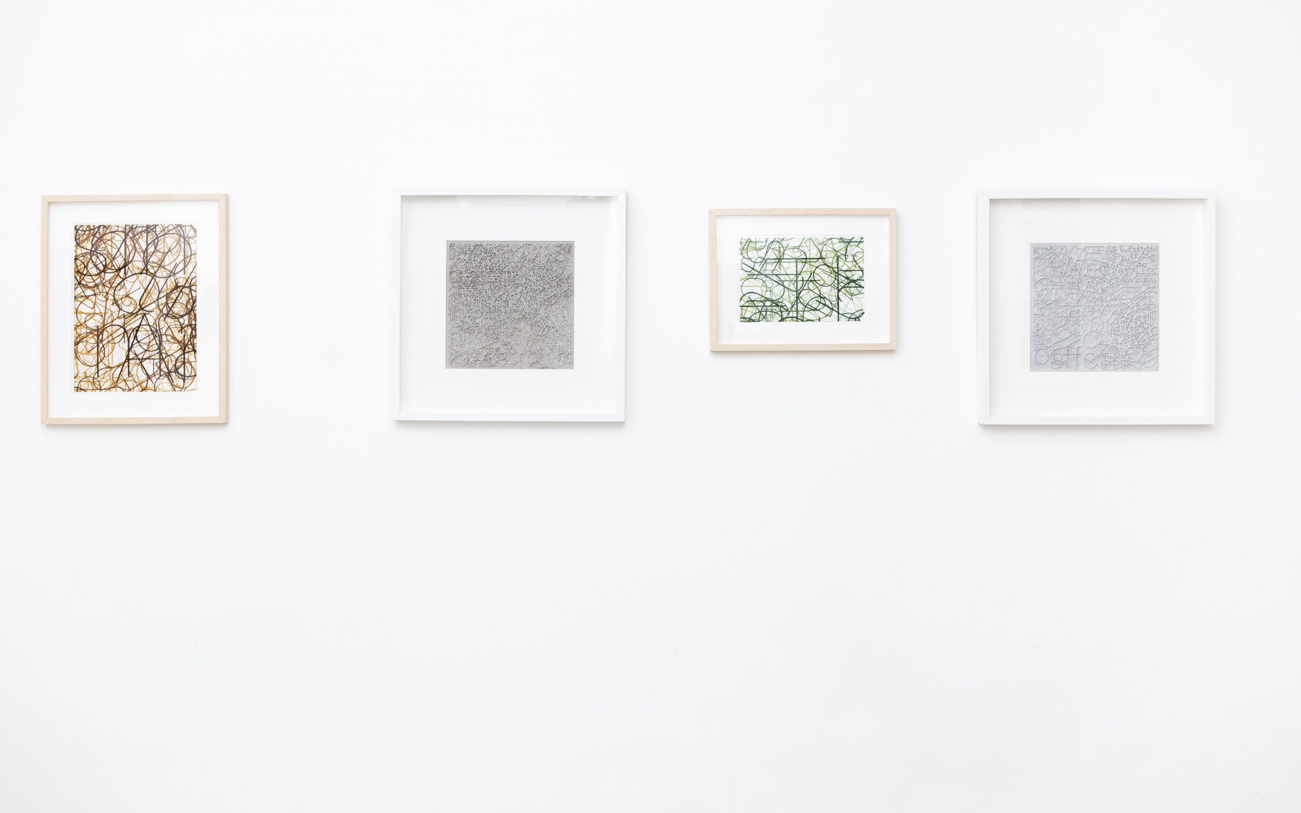 The ink drawings of the MachinePictures series are made with the help of a 3D printer and a technical pen. The nib of the pen attached to the printer head travels along the path used to create three-dimensional word reliefs with the exception that it is never lifted from the paper and always stays on the paper plane. The result records the entire set of movements of the printing along with the inevitable routes that take the head from a finished part of the relief to the next part to be printed, staying clear of the completed elements. Consequently, every drawing is made up of one very long line that crosses itself multiple times, thus creating differences in tone.