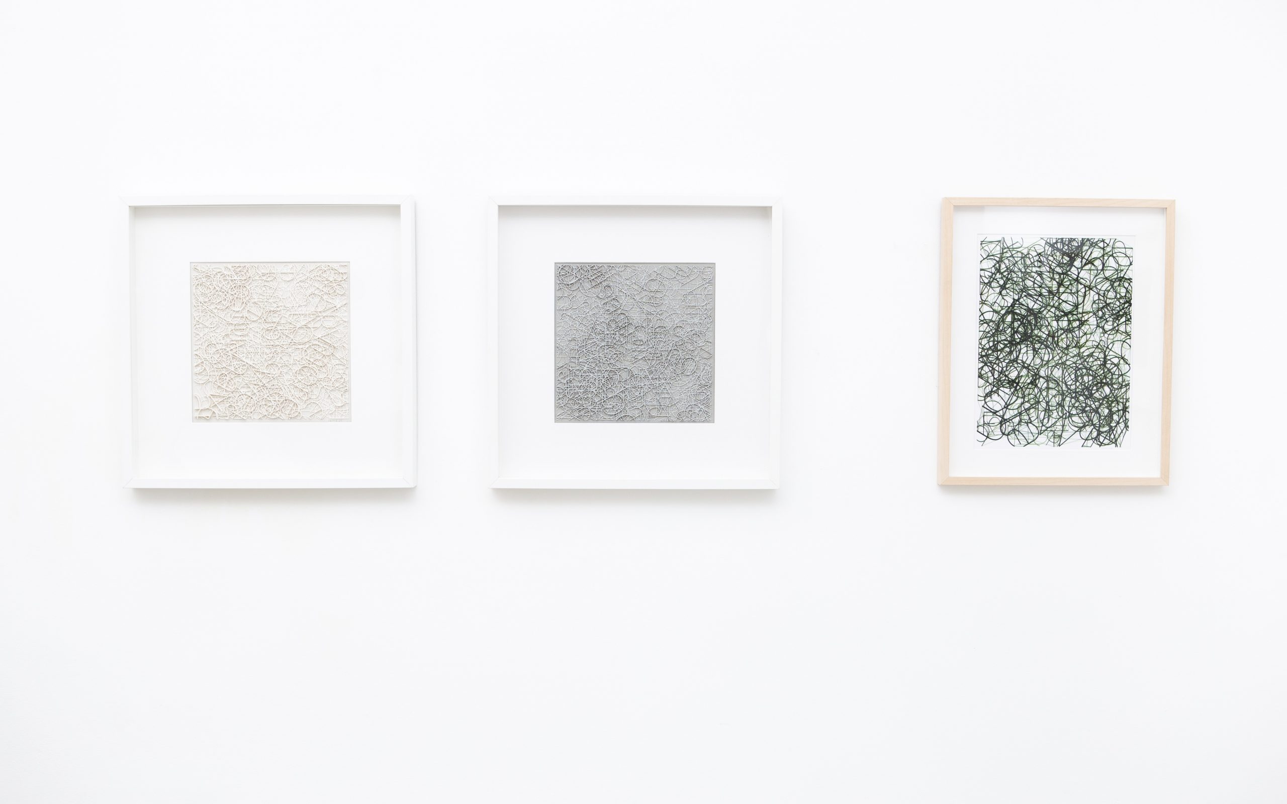 A nyomtató fejére rögzített tollhegy térbeli szöveg-domborművek készítésének útját járja be, azzal a különbséggel, hogy sosem emelkedik a magasba, mindvégig a papír síkjában marad. Az eredmény a nyomtatás teljes mozgássorozatát rögzíti, azokkal a kényszerű útvonalakkal együtt, melyek az egyik befejezett domborműdarabról a következő nyomtatandó részlethez vezetnek, elkerülve a már elkészülteket. Ebből adódóan minden egyes kép egyetlen nagyon hosszú vonalból áll, mely sokszor áthalad saját magán, így hozva létre a tónuskülönbségeket.