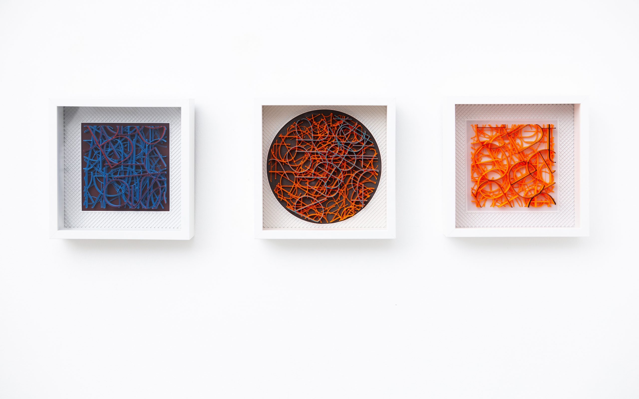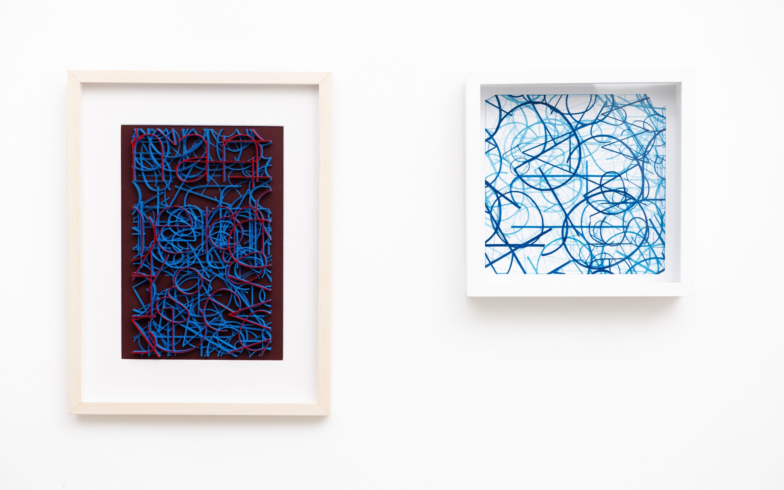 A GépKépek című sorozat tusrajzai 3d nyomtató és csőtoll segítségével készülnek.